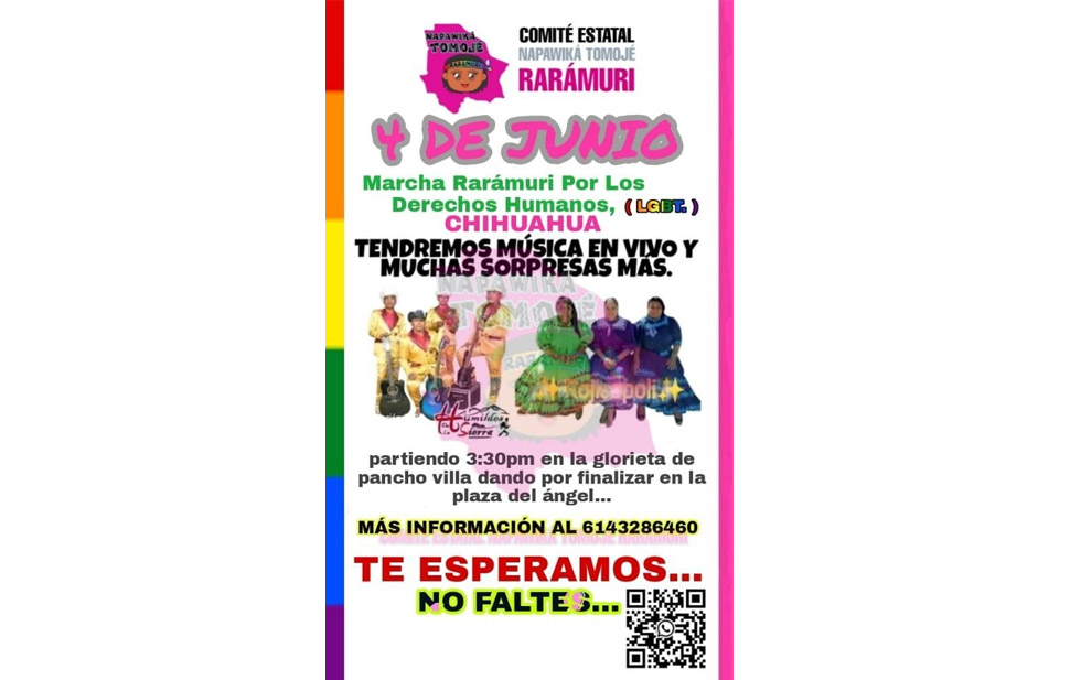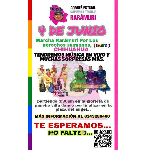 | 5 | Guachochi | Marcha Rarámuri por los Derechos Humanos (LGBT) Chihuahua | "Muéstrame tu hermandad no tu rechazo" | 1 | 4 de junio | 1er marcha indigena LGBT en Chihuahaua y en la República Mexicana. | |||