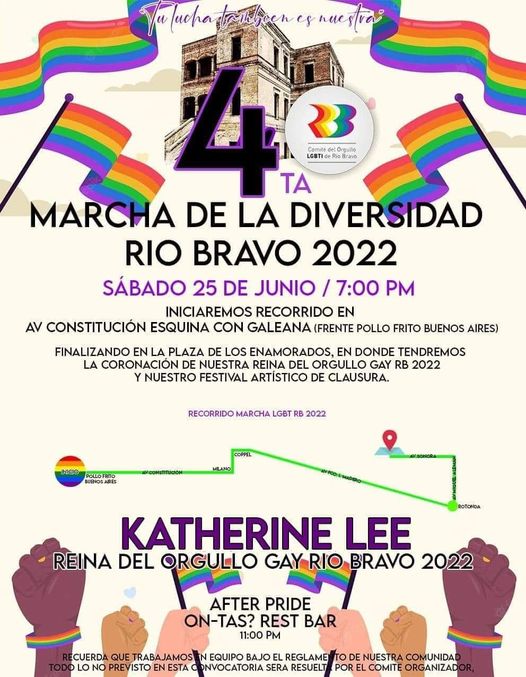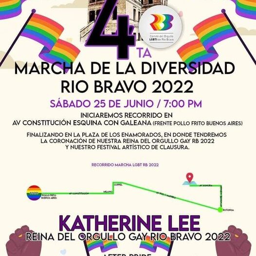 | 8 | Juárez: Río Bravo | 4ta Marcha de la Diversidad Río Bravo 2022 | "Tu lucha también es nuestra" | 4 | 25 de junio | ||||