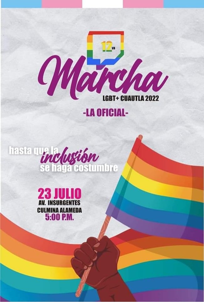 2 Cuautla 12va Marcha LGBT+ Cuautla 2022 -LA OFICIAL- "Hasta que la inclusión se haga costumbre" LA MARCHA OFICIAL 12 23 de julio Identidad de género